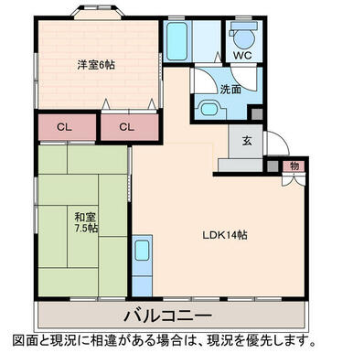 | 間取り | 2LDK(LDK14 洋6 和7.5) | 主要採光面 | 南 |