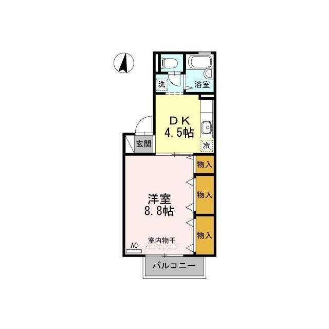 | 間取り | 1DK(洋8.8 DK4.5) | 主要採光面 | 南 |