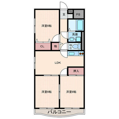 | 間取り | 3DK(DK9 洋6 洋6 洋6) | 主要採光面 | 南 |