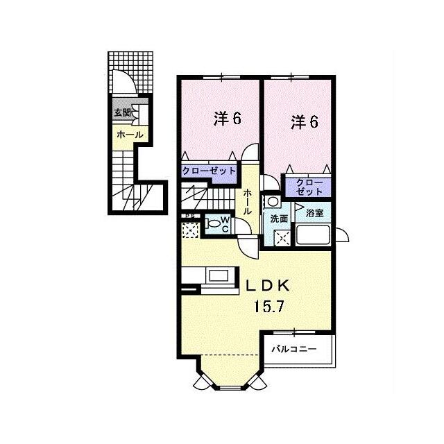 | 間取り | 2LDK(洋6 洋6 LDK15.7) | 主要採光面 | 南 |