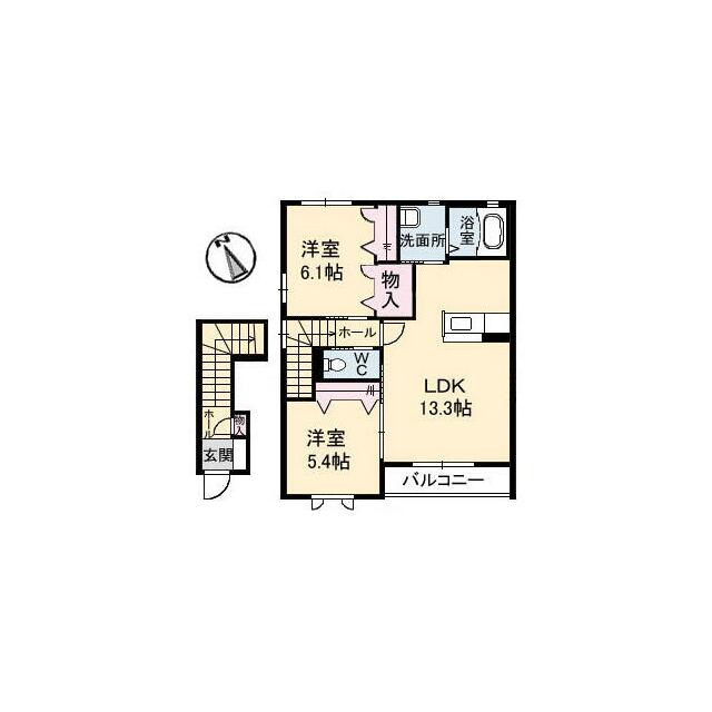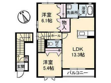| 間取り | 2LDK(LDK13.3 洋6.1 洋5.4) | 主要採光面 | 南 |