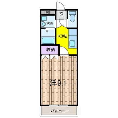 | 間取り | 1K(洋9.1 K3) | 主要採光面 | 東 |