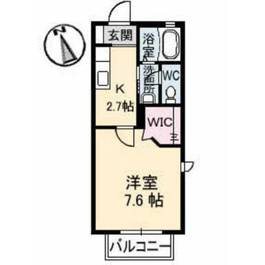 | 間取り | 1K(K2.7 洋7.6) | 主要採光面 | 南 |